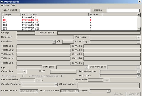 - Mantenimiento archivo maestro de proveedores. Consultas y listados.