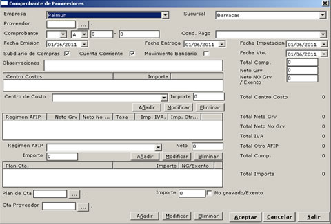 - Grabación de Comprobantes de Proveedores.