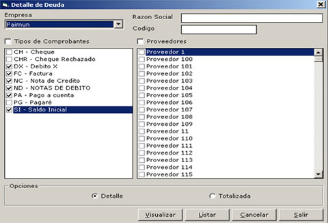 - Vinculación dinámica de la visualización de comprobantes en los detalle del correspondiente, a la deuda o el resumen de cuenta de cada proveedor.