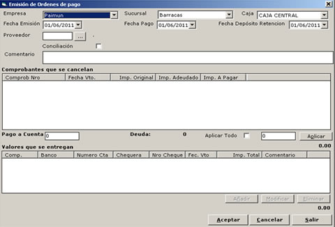 - Pagos con distintos tipos de valores en una misma Orden de Pago.