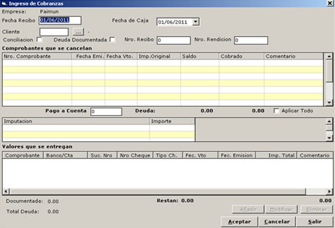 - Cobranza con distintos tipos de valores en un mismo recibo.