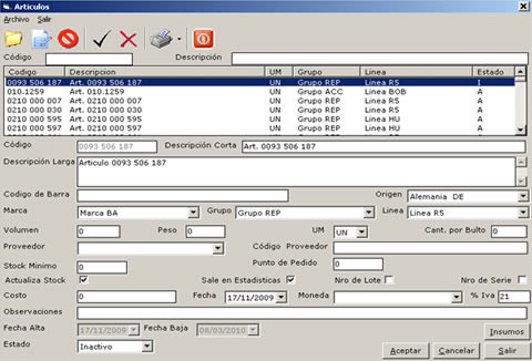 - Categorización de artículos. Líneas, grupos, marcas, etc.