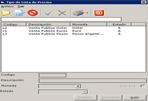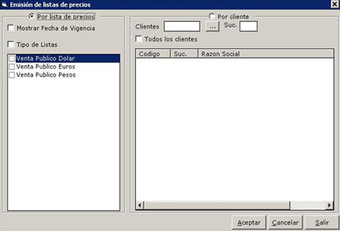 - Emisión de listas de precios.