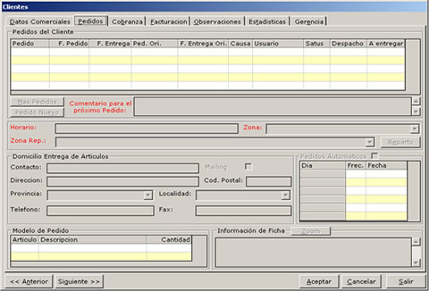 - Fichas de clientes.
