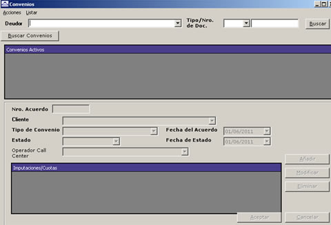 - Manejo de Convenios asociados a un deudor y cliente con el compromiso de cuotas pactadas y los honorarios asociados a la gestión cobranza.