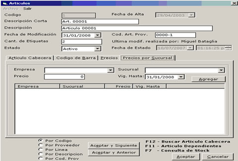 - Emisión de listados de Artículos con diferentes criterios de selección por sus atributos -Línea, Rubro, Subrubro, Proveedor, Fabricante, Marca-.