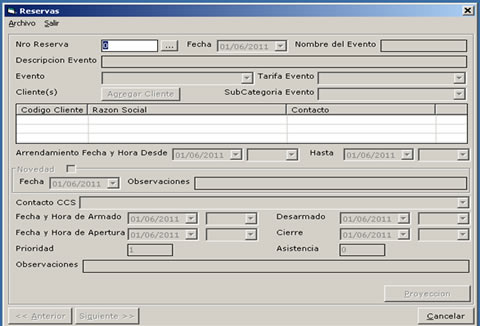 - Manejo de Reservas asociadas a un módulo y una ubicación para un Evento vinculado a una fecha de arrendamiento.
