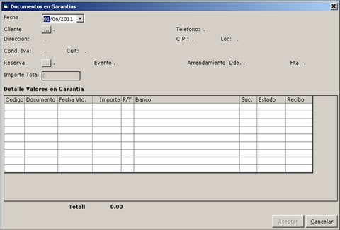 - Manejo de Documentos en Garantías recibidos.